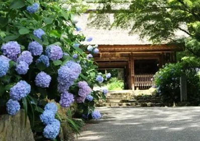 別名「あじさい寺」として知られる花の名所。6月には約4,000株のあじさいが境内を彩り、 訪れる人々を魅了します。東大寺再建に尽力した俊乗房重源上人ゆかりの寺院で、 国宝の鉄宝塔や重要文化財の仁王門など、貴重な文化財も有しています。